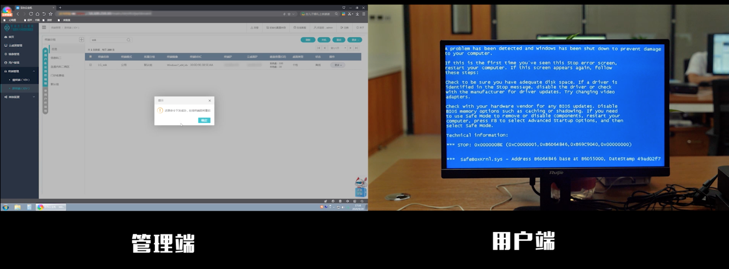 管理端可远程管理,一键恢复故障终端