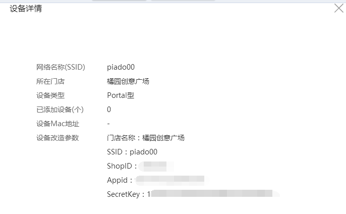 记录下SSID,ShopId, Appid, SecretKey然后进入设备端配置