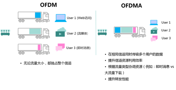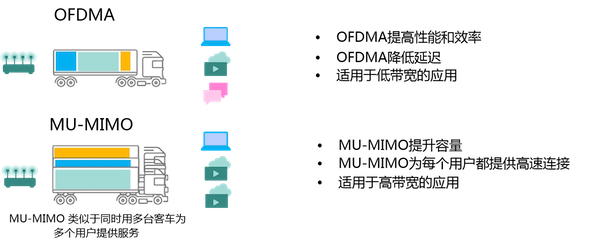 ▲根据所服务的应用程序类型使用OFDMA和MU-MIMO