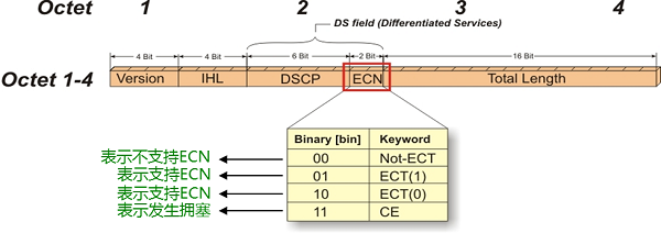 • 接收端收到ECN为11的报文发现拥塞,正常处理该报文;