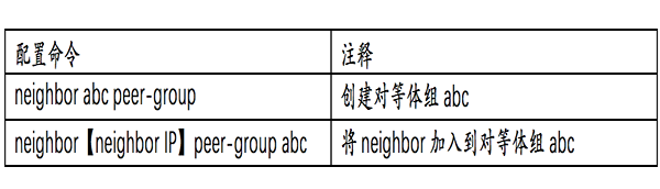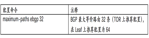 此外,Leaf和TOR之间存在大量的等价邻居,拥有完全一致的配置策略。实际的部署过程中推荐使用BGP peer-group功能来简化配置。