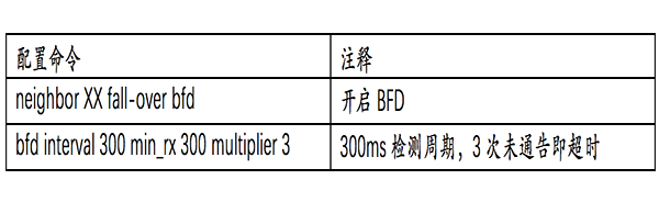 而BFD可以提供毫秒级的检测精度,通过与BGP联动,可以实现BGP路由快速收敛,确保业务连续。在数据中心IDC中推荐开启BFD for BGP的设置,考虑到设备性能,全端口开启时推荐采用300ms*3配置。
